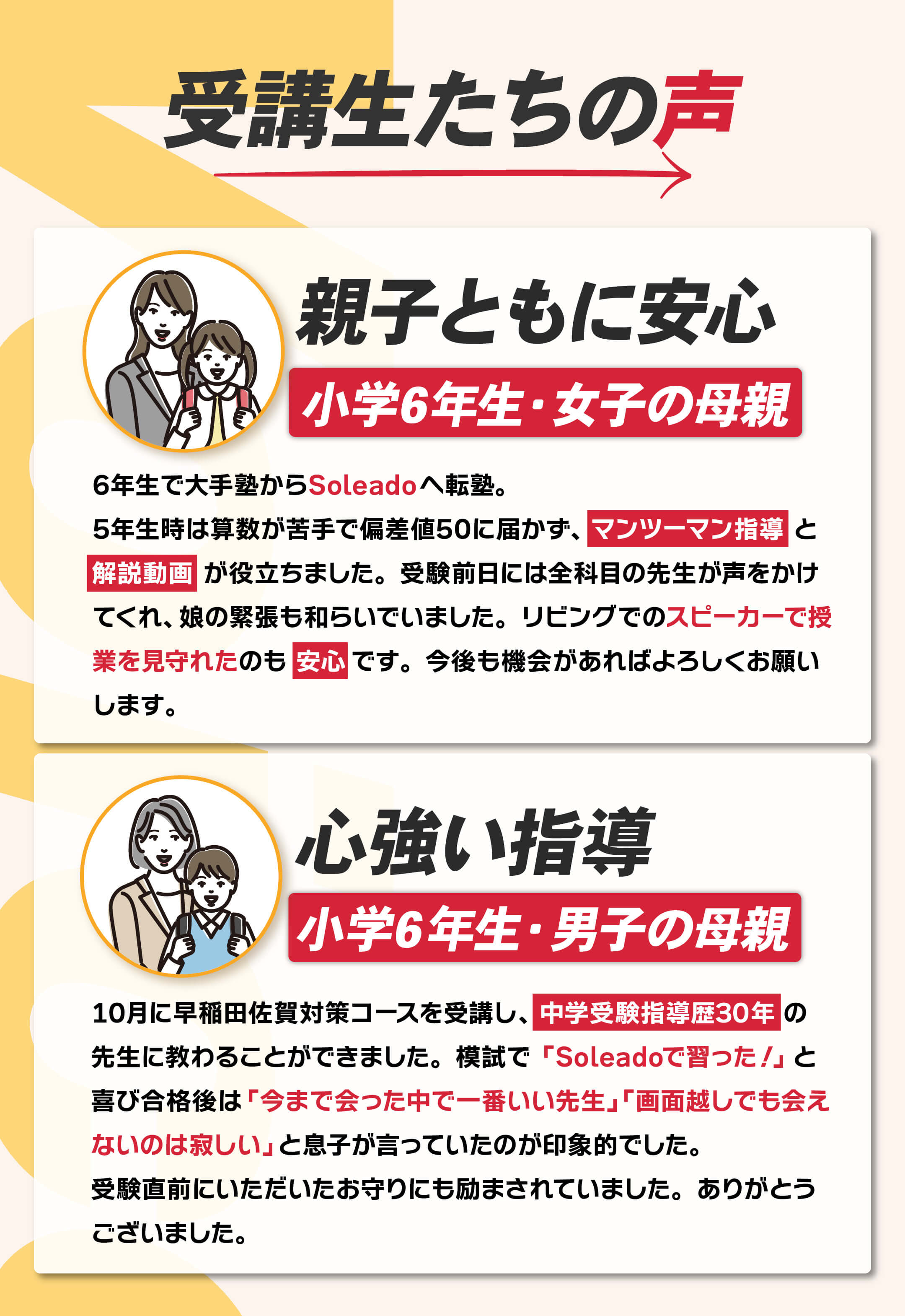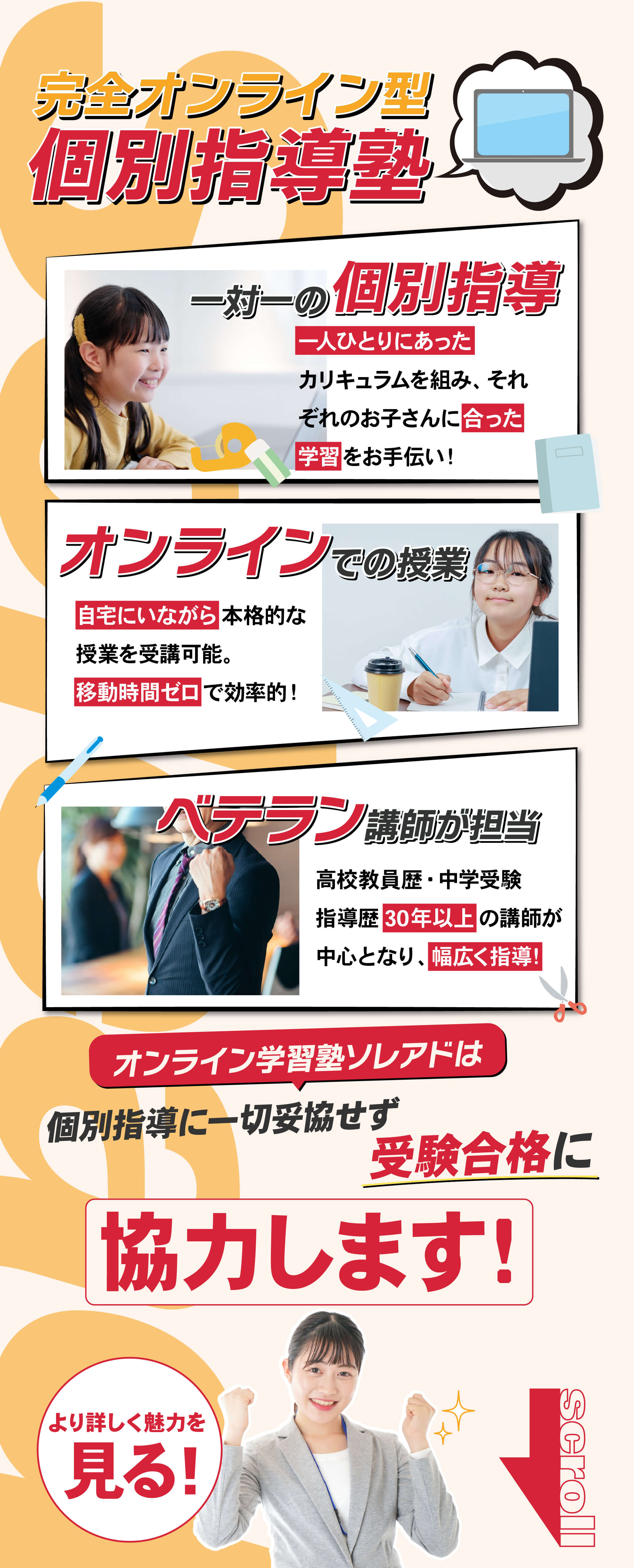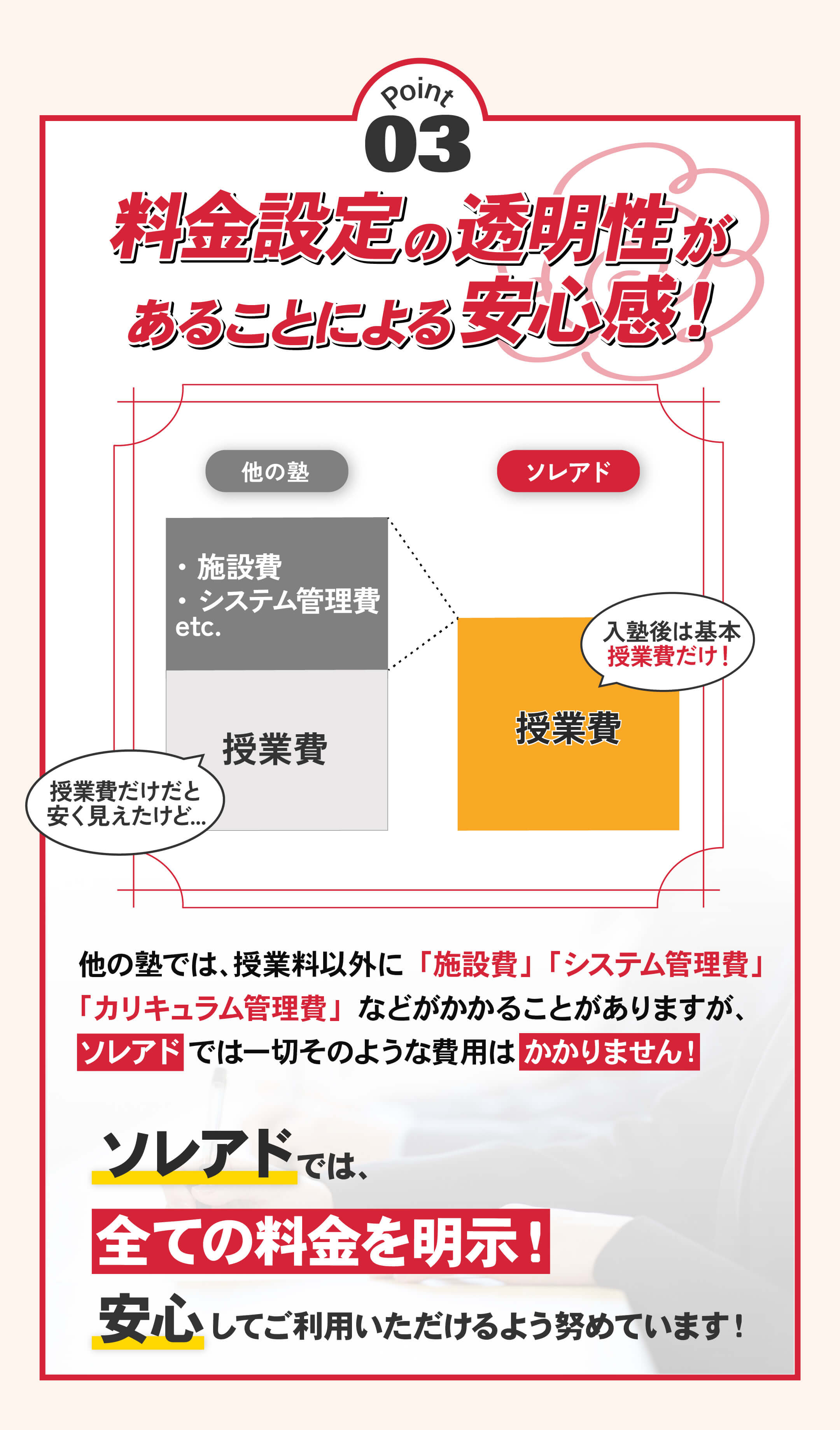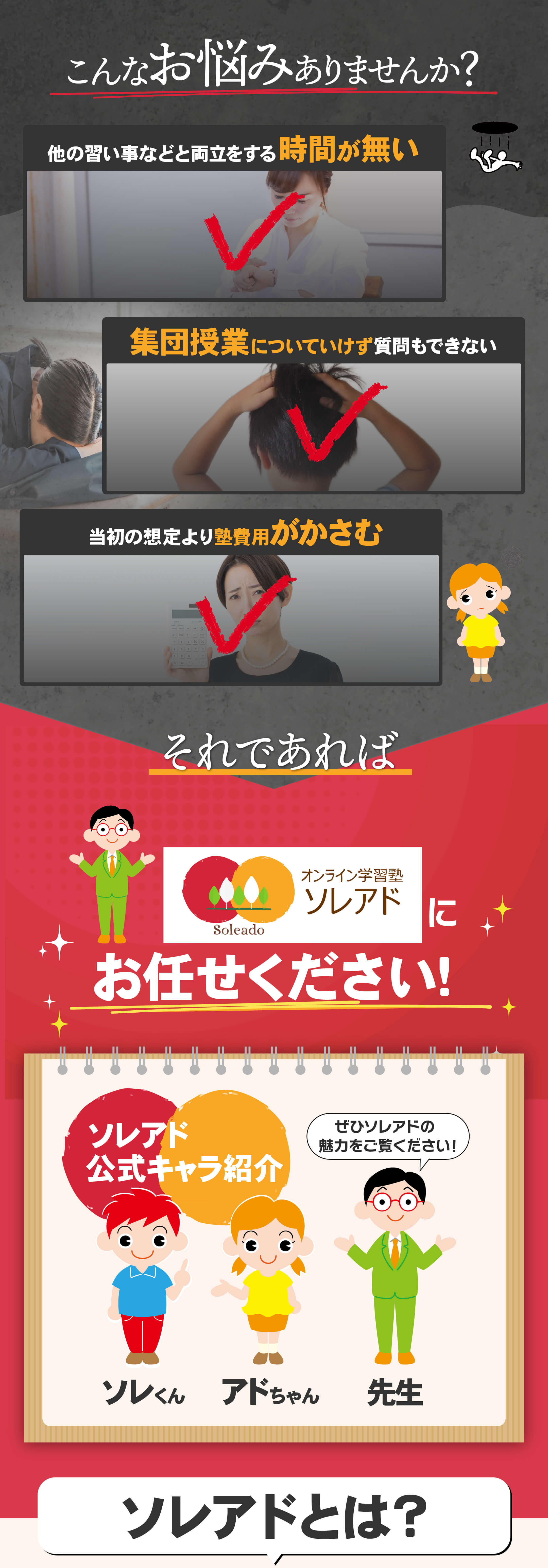 オンライン学習塾ソレアド (以下「当社」)は、以下のとおり個人情報保護方針を定め、 個人情報保護の仕組みを構築し、全従業員に個人情報保護の重要性の認識と取組みを 徹底させることにより、個人情報の保護を推進致します。